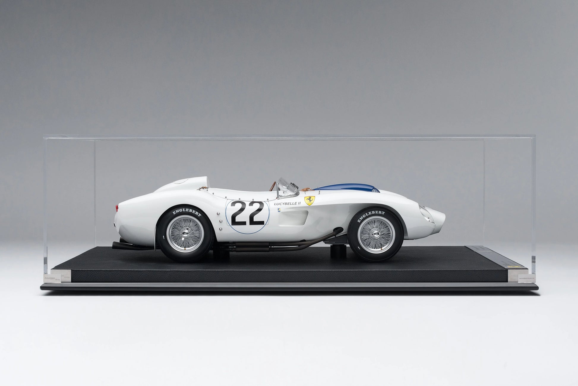 This Amalgam 1/8 scale Ferrari 250 TR recreates the celebrated 1958 Le Mans entry known as “Lucybelle II” (race number 22). Developed with high-precision reference work and executed by expert craftsmen, it delivers the presence of a true display centerpiece—ideal for a private collection, gallery-style shelf, or showroom-grade showcase.