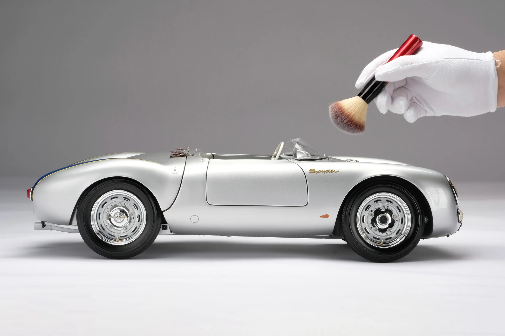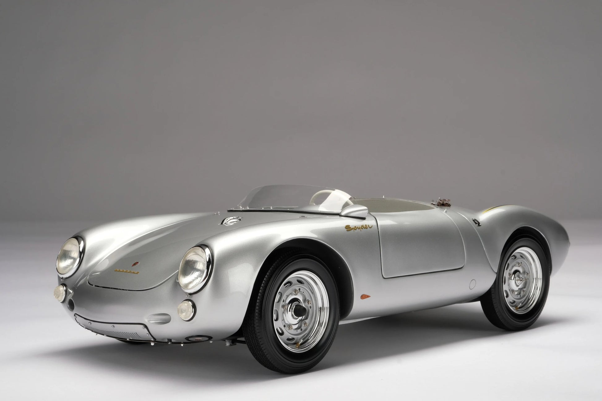A true icon of lightweight racing design. This 1/8 scale Amalgam model faithfully recreates the legendary Porsche 550 Spyder, the car that defined Porsche’s early motorsport success and established its reputation for engineering efficiency and agility.