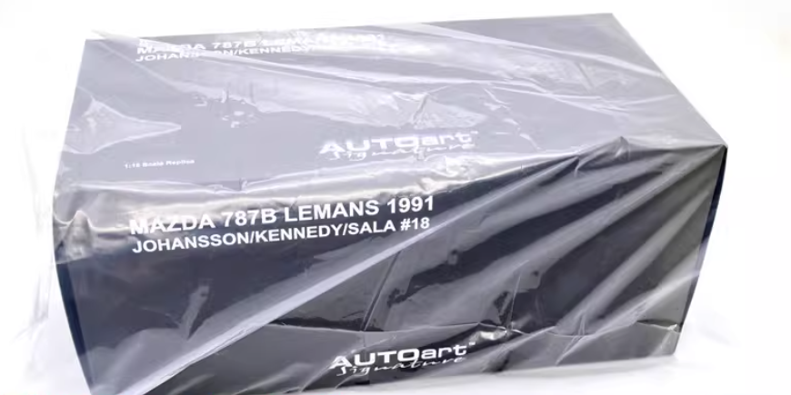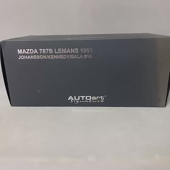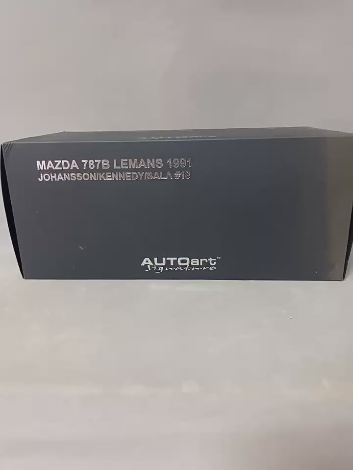 This is an original AUTOart 1:18 Mazda 787B #18 finished in the 1991 Le Mans white race livery. The model features a diecast alloy main body, full-opening structure, and removable front and rear sections, with all original accessories included.