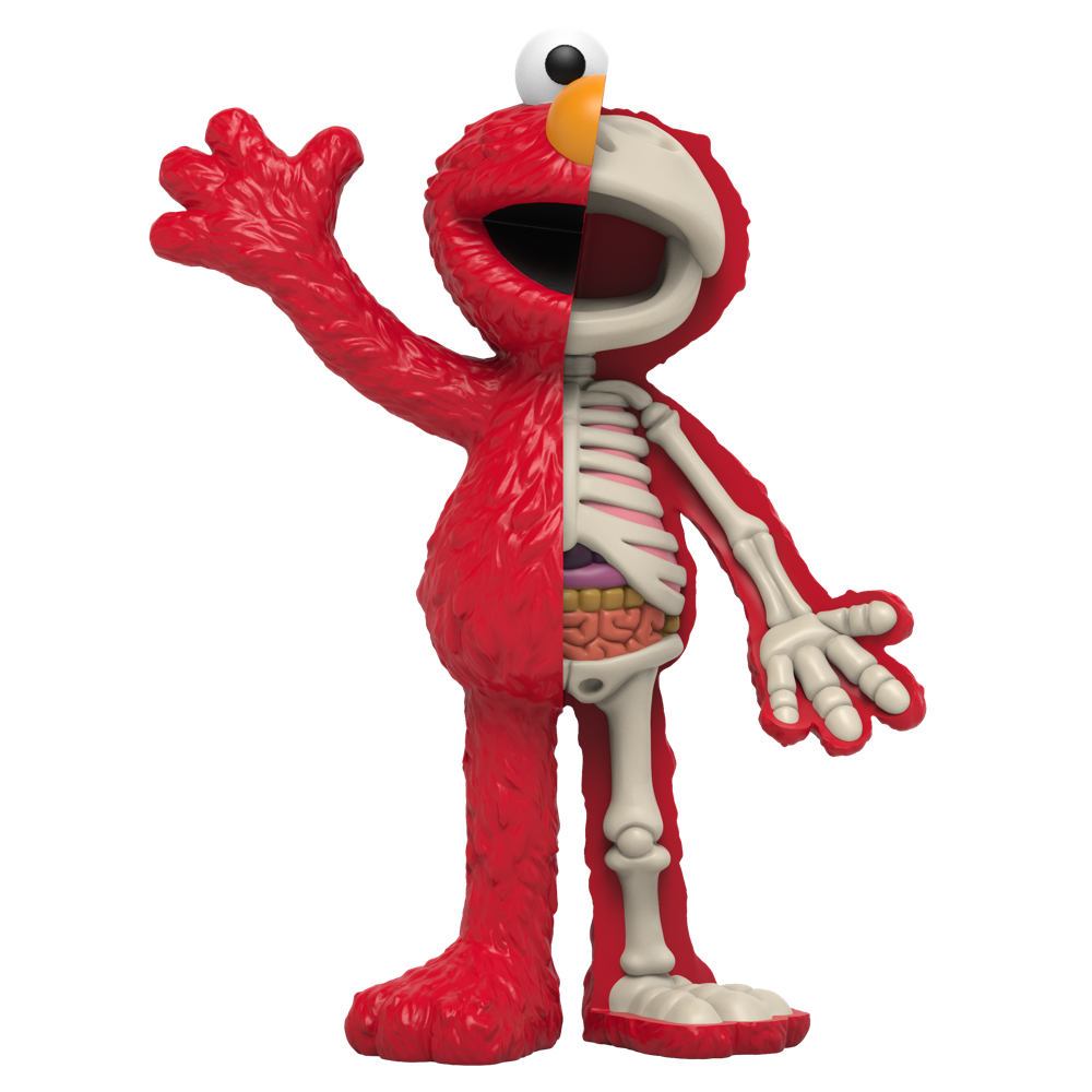 This life-size ELMO statue is a limited edition collectible by Mighty Jaxx, inspired by the beloved Sesame Street character and redesigned in the iconic XXRAY dissected style by Jason Freeny.